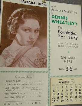 Never one to miss a promotional opportunity, Wheatley illustrated his 1935 calendar with a still from the (then new) film of his first bestseller The Forbidden Territory as well as plugging his latest titles.