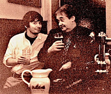 In 1992 or 1993 – the details are blurred by time – and when Ian was still a commoner and I had a proper job, I was in Edinburgh on business and Ian insisted on driving me around the city and showing me the sites, or at least the one sight I was really interested in, The Oxford Bar local of Inspector John Rebus. Naturally there had to be photographic proof of this event and Ian cheerfully agreed to recreate the scene 30+ years on in a bar in Venice.